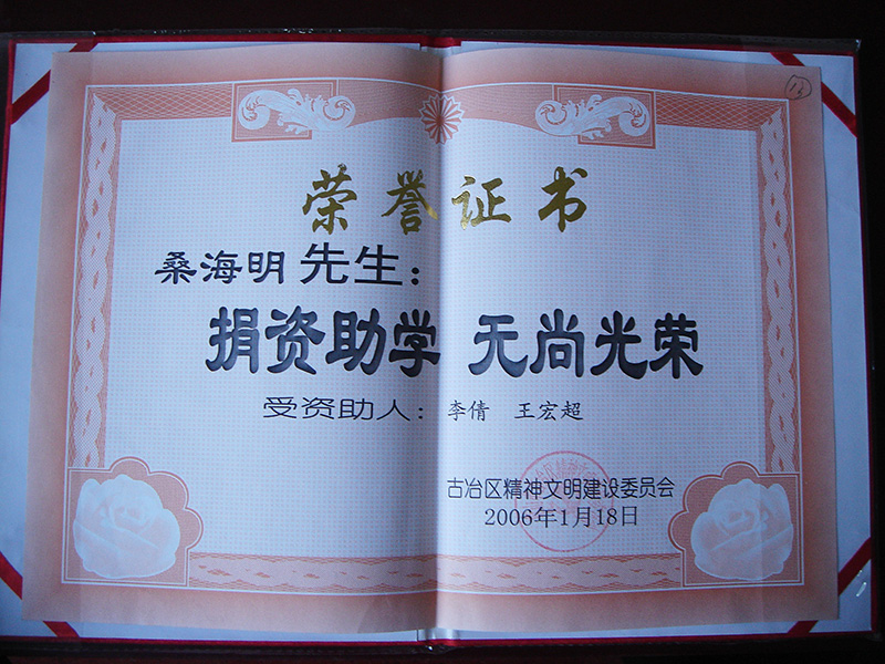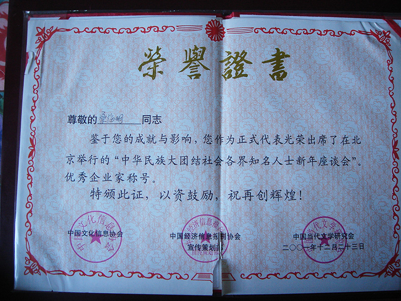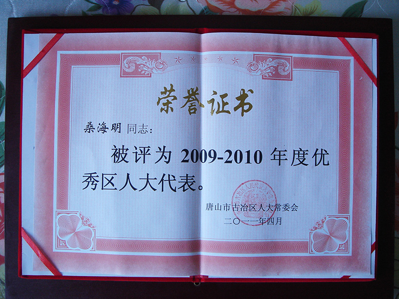 集团董事长桑海明自1988年开始创业至今已有三十余年的从业历程,曾历任唐山市政协委员,唐山市青联委员,唐山市残疾人企业家协会副会长、古冶区人大代表、古冶区残联副主席、古冶商会副会长、古冶区私营企业协会副会长等职务,并多次被授予如下殊荣: