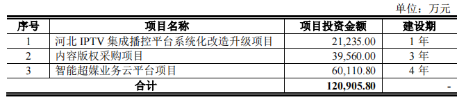 具体而言,本次募投项目中河北IPTV集成播控平台系统化改造升级项目的实施将进一步强化智能化内容运营,并实现高效的内容智能审核;筑就播控系统边界防护能力,加强网络管理手段,保障网络安全。内容版权采购项目的实施将有利于持续提升公司的内容竞争力,为公司业务长期发展带来良性循环。智能超媒业务云平台项目的实施将有利于培育平台型经济和打造区域新型主流媒体机构,提高企业创新能力与市场竞争力,培植新的业务增长点。