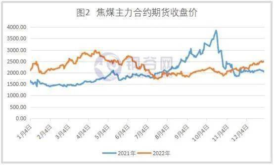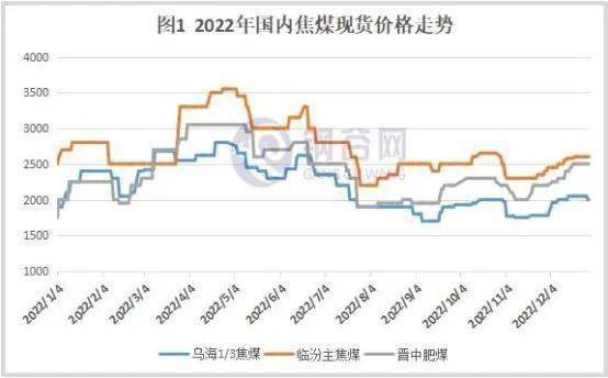 2022年,国内炼焦煤现货价格整体高位波动,一直处在2500元上下波动。上半年焦煤价格整体上偏强运行,炼焦煤年初价格2500元/吨,下半年整体宽幅震荡,伴随着钢材价格好转等情况出现了阶段性反弹,年末价格2600元/吨,与年初价格相差了100元/吨。2022年4月底,炼焦煤价格到达全年最高水平3550元/吨,与8月初最低点2200元/吨,相差1350元/吨。