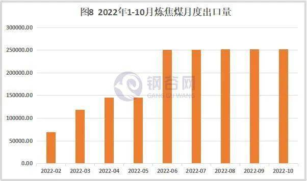 “十三五”期间减产能的规划实施,导致2015年后我国炼焦煤大幅的减产。2019年起,我国炼焦煤的产量有所回升,约为4.70亿吨。2021年我国炼焦煤产量进一步提升约为4.9亿吨。2022年1-10月份炼焦精煤1-10月总产量4.1亿吨。