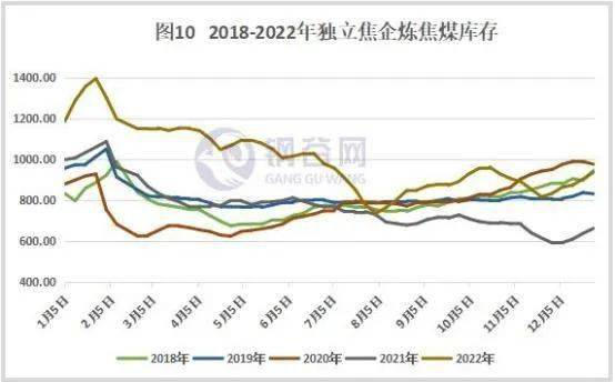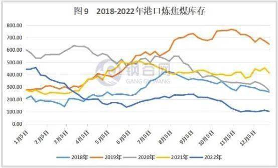 从库存方面看,2022年,全年焦化厂与钢厂维持低库存,库存水平为近五年最低,虽然最近一个月,下游钢厂和焦化厂库存在冬季补库效应下有所回升,但整体仍处于低位,港口库存无明显变化。受制于终端消费疲软,预计焦钢企业明年大概率仍保持低库存水平运行,短期补库或将为焦煤带来阶段性反弹,但长期支撑较弱。