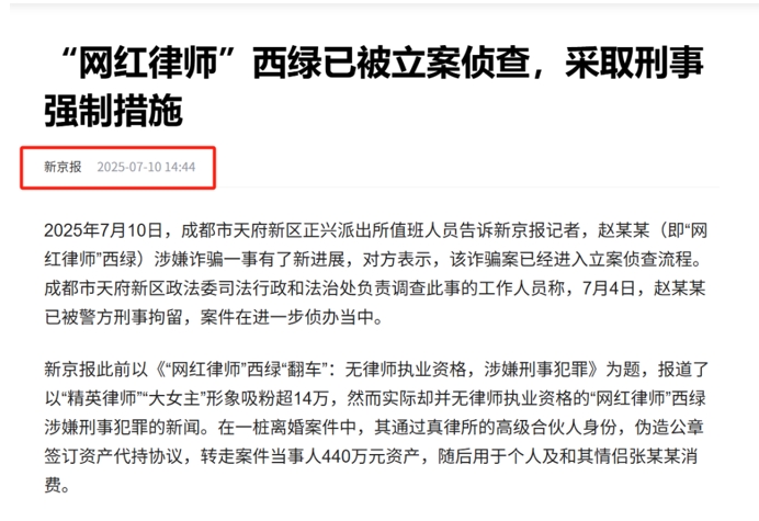 近日,拥有14万粉丝的成都 “网红律师”西绿赵某假身份一事,引发广泛关注。消息称,这名打造“精英女律师”人设的网络红人,实际上并无律师执业资格。