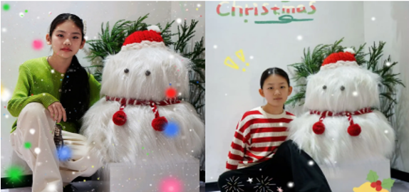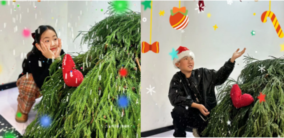 圣诞主题打卡环节正式开启,多样的拍摄场景让孩子们的快乐值拉满,每一个画面都定格了独属于童年的圣诞美好: