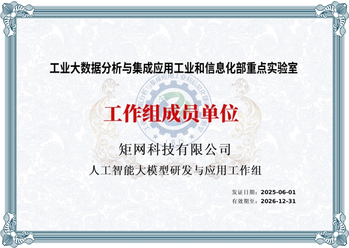 近日,国家工业信息安全发展研究中心发布了工业大数据分析与集成应用工业和信息化部重点实验室(以下简称“实验室”)2025年度工作组成员单位名单。矩网科技有限公司(以下简称“矩网科技”)成功入选实验室人工智能大模型研发与应用工作组成员单位。