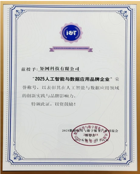 近日,由北京市科学技术协会指导,中国雄安集团城市发展投资有限公司、北京物联网智能技术应用协会、物联中国团体组织联席会联合主办的“2025中国(雄安)人工智能与数据应用峰会暨创新应用品牌企业发布会”在雄安召开,2025人工智能与数据应用品牌企业在会上发布,矩网科技有限公司(以下简称“矩网科技”)凭借在数智化、AI技术融合应用等方面的卓越表现成为获此殊荣的企业之一。