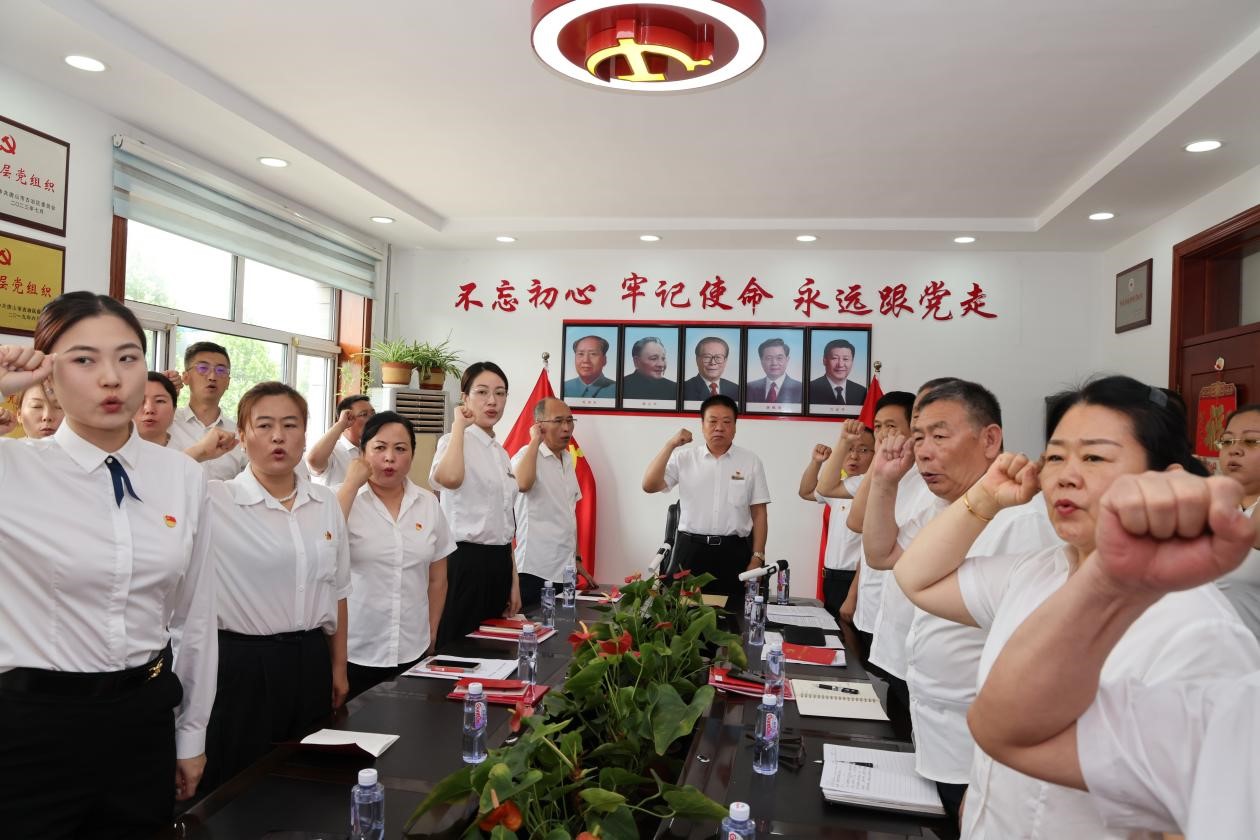最后,与会党员全体起立,面向党旗重温了入党誓词,并共同高歌《没有共产党,就没有新中国》,向党的生日祝福!