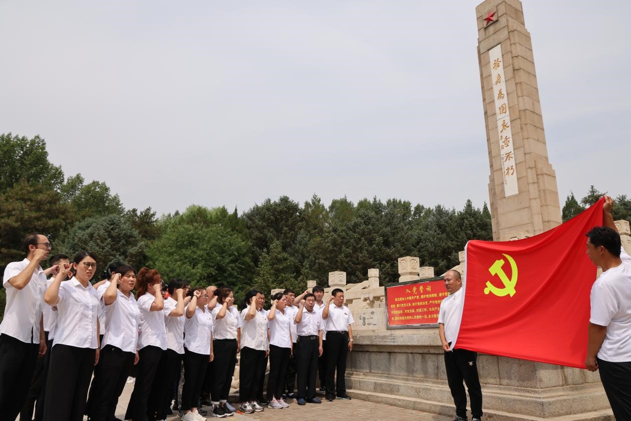在隆化英雄广场,全体党员来到朱德委员长为董存瑞亲笔题词“舍身为国,永垂不朽”的纪念碑下,在集团公司党委副书记王林成同志带领下,面向党旗高举右手,庄严宣誓:“我志愿加入中国共产党,拥护党的纲领……”。铿锵有力的誓言回荡在青松翠柏间,神圣而豪迈,初心永不忘。